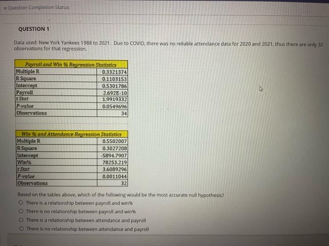 Solved Question Completion Status Question 1 Data Used New Chegg Com